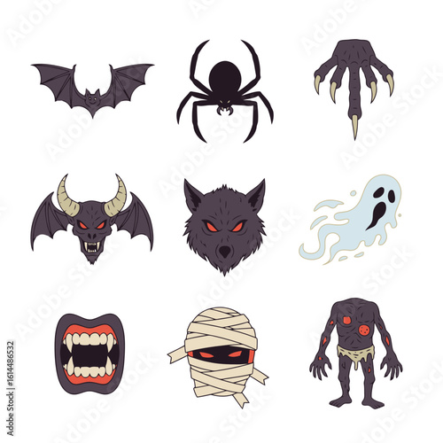 Naklejka premium Halloween Creature Icons: Spooky Vector Set