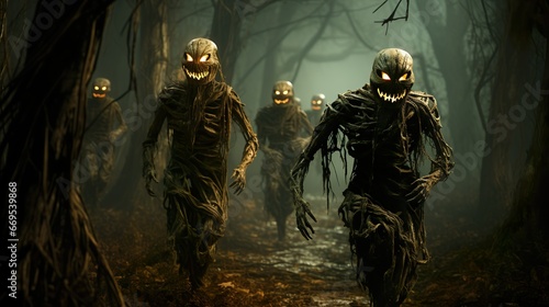 © Nim, Fototapeta premium Halloween Creepy Cute Characters - Wallpaper