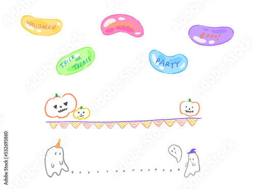 © minana, Fototapeta premium Halloween decoration Jelly beans logo line Simple and cute hand drawn illustration / ハロウィンの飾り ゼリービーンズのロゴ ライン シンプルでかわいい手描きイラスト