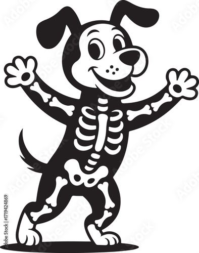 Fototapeta premium Halloween dog skeleton costume silhouette cute vector