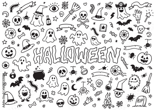 © leavector, Fototapeta premium Halloween doodle icons compilation set. Vector doodle illustration set for web, t-shirt design, other graphic design use