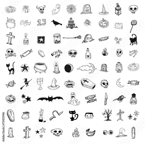 © Gabriel Jose, Fototapeta premium Halloween doodles elements. vector illustration
