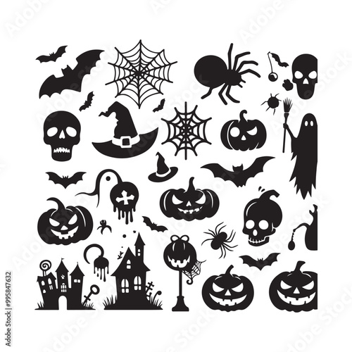 Fototapeta premium Halloween elements silhouette vector. Halloween elements silhouette set....