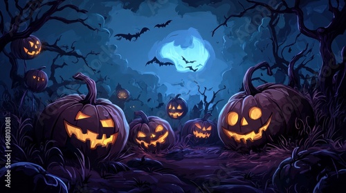 Fototapeta premium Halloween event backdrop featuring elegant and sophisticated pumpkins. Excellent artwork for Halloween festivities, posters, banners, and greeting cards.