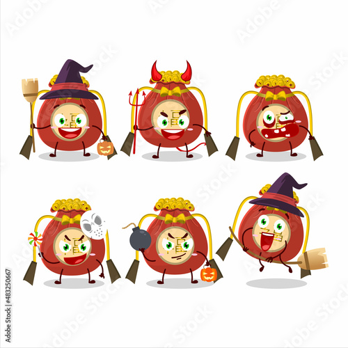 © kongvector, Obraz premium Halloween expression emoticons with cartoon character of red bag chinese