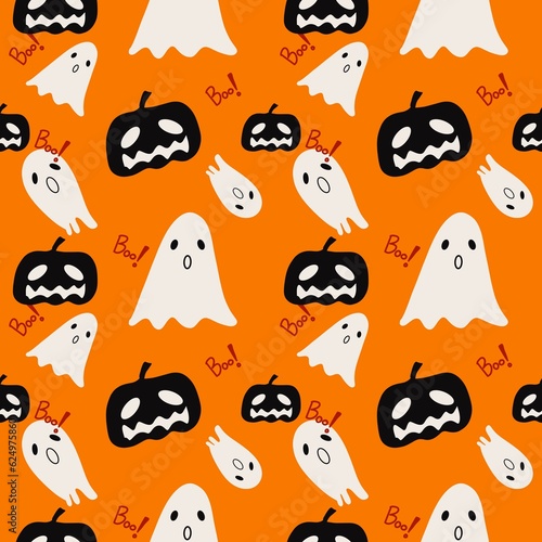 © Sirikuan, Naklejka premium Halloween fabric pattern. hand drawn can be used in fashion decoration design. Bedding, curtains, tablecloths
