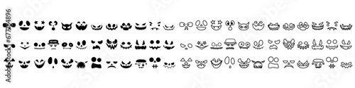 © Denys, Naklejka premium Halloween Face icon vector set. Scary face illustration sign collection. Pumpkin face symbol or logo.