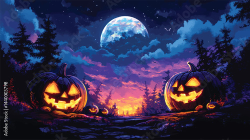 © Cartoonfor, Naklejka premium Halloween Fire River Under the Moon