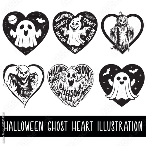 © Shahidul, Fototapeta premium Halloween Ghost Heart Illustration Bundle Set