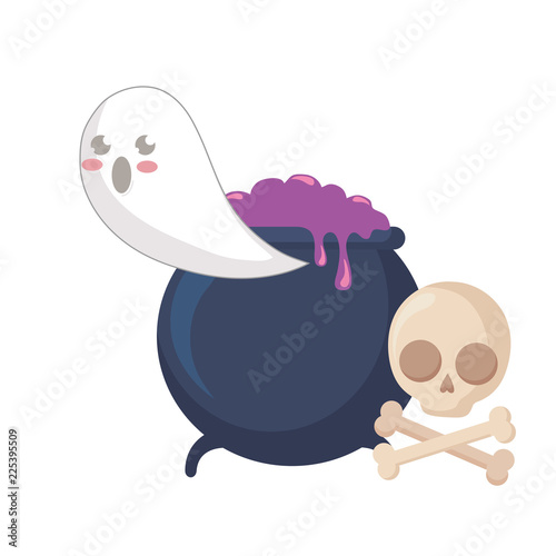 Obraz premium halloween ghost with cauldron and skull