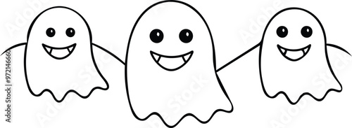 © RH Creative Design , Obraz premium Halloween ghosts line art with editable vector collections