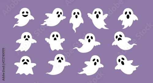 © homan, Fototapeta premium Halloween Ghosts on Purple