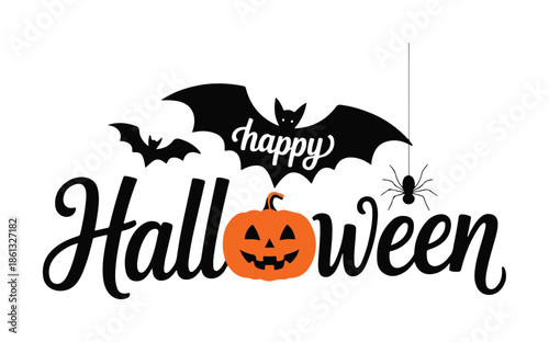 © Baloch, Fototapeta premium Halloween Greeting with Pumpkin Bats and Spider