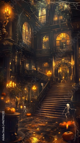 © LeoArtes, Fototapeta premium Halloween, Haunting, Witches, Ghosts, Haunted, Vampire, Cemetery, Pattern Background, Wallpaper, Cover and Screen for Smartphone, PC, Laptop, 9:16 and 16:9 Format