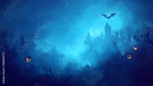 Fototapeta premium Halloween, Haunting, Witches, Ghosts, Haunted, Vampire, Cemetery, Pattern...