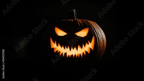 © Joyce, Fototapeta premium Halloween holiday carved pumpkin with black background