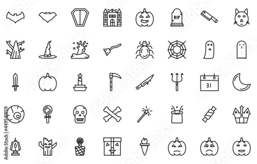 © IdeaGrafc, Naklejka premium Halloween icon set line style vetor design for your design editable clean node