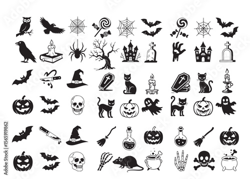 Naklejka premium Halloween icon set, scary symbols collection, horror holiday vector...