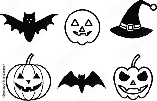© ForhadGFX, Fototapeta premium Halloween icons collection black and white illustrations