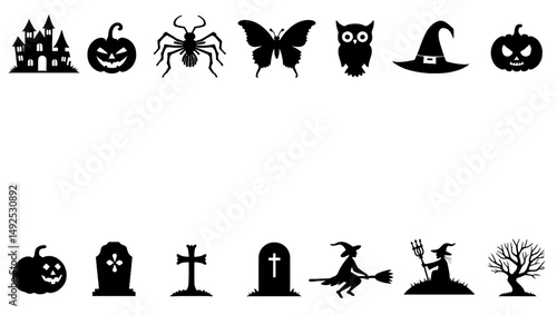 Naklejka premium "Halloween Icons Set – Flat Spooky Symbols of Ghosts, Pumpkins, Witches, and...