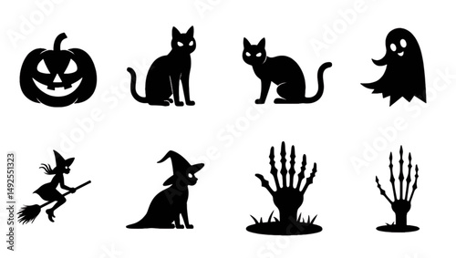Fototapeta premium "Halloween Icons Set – Flat Spooky Symbols of Ghosts, Pumpkins, Witches, and...