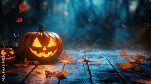 © warunthorn, Fototapeta premium Halloween Jack-o'-lantern.
