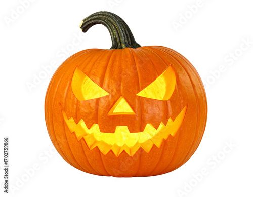Fototapeta premium Halloween jack-o’-lantern pumpkin isolated on transparent background