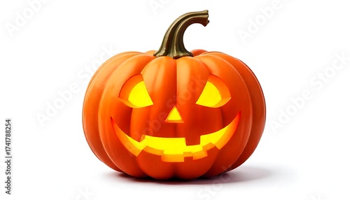 Fototapeta premium Halloween Jack-o'-Lantern Pumpkin with Scary Face isolated on white...