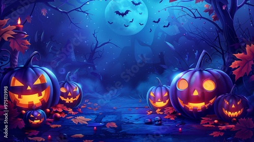 Fototapeta premium Halloween Jack o Lanterns with Full Moon Background
