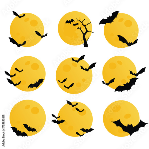 © nguyenhuu, Fototapeta premium Halloween Moon and Bats Collection