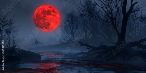 © Malik, Fototapeta premium Halloween Moon and Cloudy Sky Background for Spooky Scenes