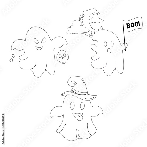 Obraz premium Halloween outline ghost character. Ghost in different poses