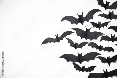 © ink drop, Naklejka premium Halloween paper bat decorations on a white background.