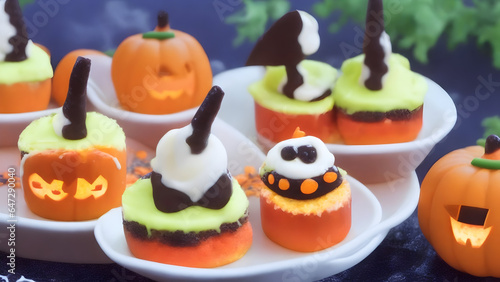 © arrowgfx, Obraz premium Halloween party cake ,generative AI