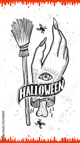 Fototapeta premium Halloween party invitation with hand-drawn illustrations.