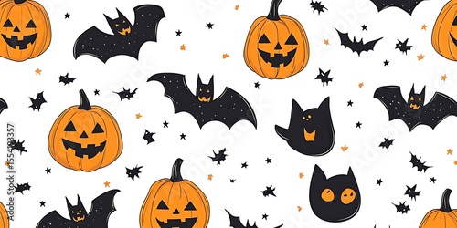 Fototapeta premium Halloween pattern, bats, pumpkins, ghosts.