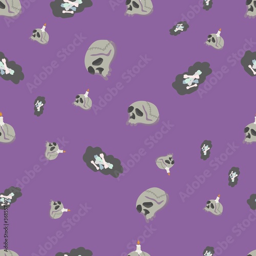 © Olga, Fototapeta premium halloween pattern with skulls and bones