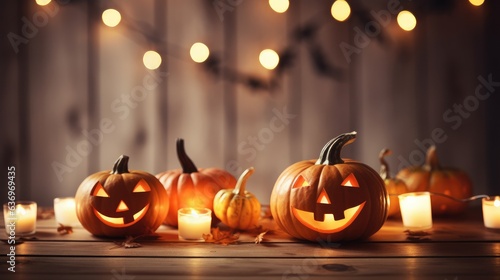 Fototapeta premium Halloween Pimpkins Generated Ai