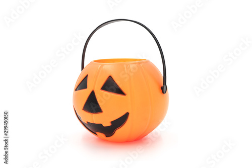 Fototapeta premium Halloween props cute plastic pumpkin head basket toy close-up isolated on...