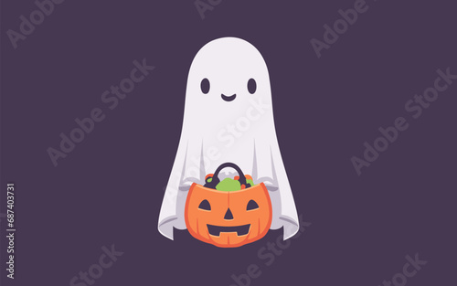 © PixelCraft Lab, Fototapeta premium halloween pumpkin and ghost