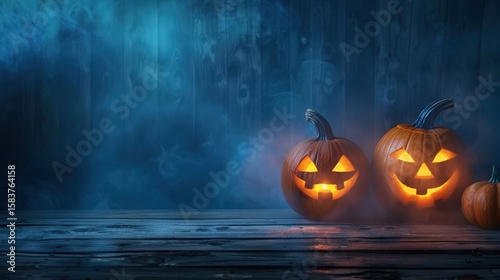 Naklejka premium Halloween pumpkin carving celebration spooky atmosphere photography dark setting close-up view festive theme