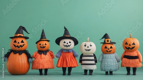© Arthur Constantine, Obraz premium Halloween Pumpkin Costume Parade with Selective Focus on Characters - Ultra HD Copy Space for Text