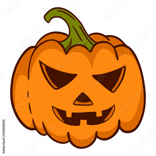 Fototapeta premium Halloween Pumpkin Face Illustration with Creepy Expression. Vector Character