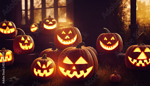 © AICreations, Obraz premium Halloween Pumpkin Heads