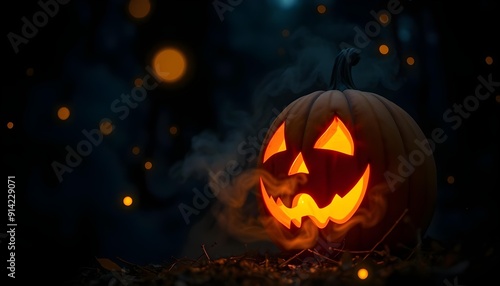 © OGRI, Fototapeta premium halloween pumpkin in the dark