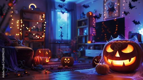 © Creativemind93, Fototapeta premium halloween pumpkin in the window