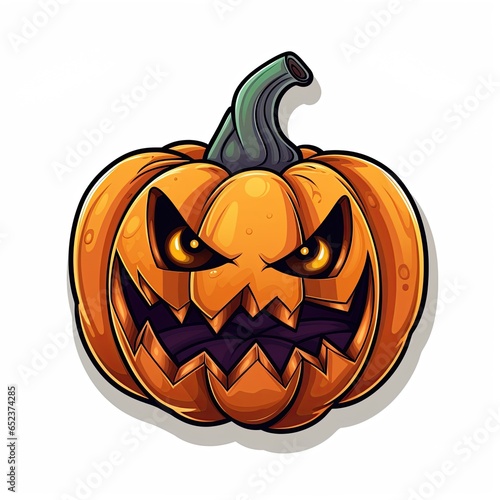 Fototapeta premium Halloween Pumpkin Jack O Lanter sticker design on white background. Generative Ai