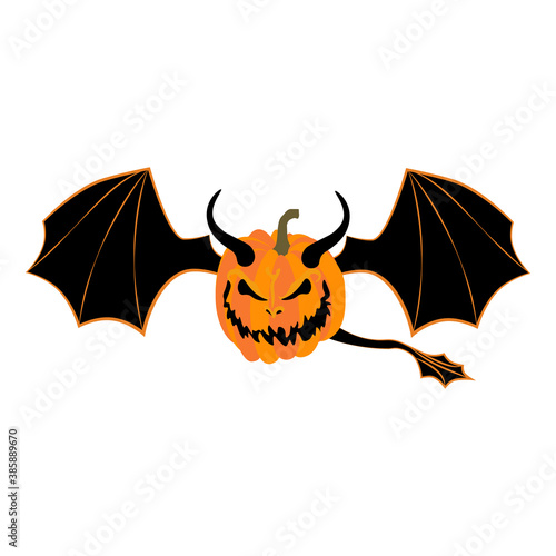 Fototapeta premium Halloween pumpkin monster with wings and horns vector illustration