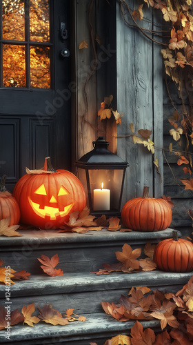© Chalit, Obraz premium halloween pumpkin on a wooden fence