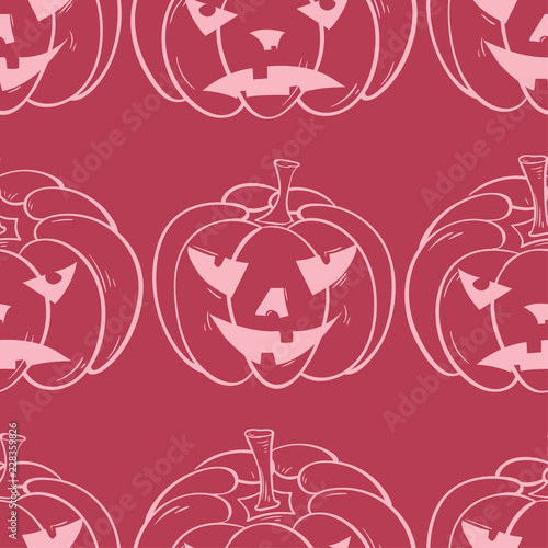 Fototapeta premium Halloween pumpkin pattern. Pink beige seamless background